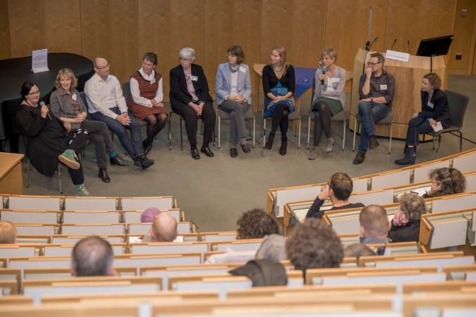 Podiumsdiskussion mit A. Doppler, A. Wispler, V. Hodel, Dr. D. Nashan, A. Meyer, Dr. Weg-Remers, Dr. J. Hassel, Dr. A. Ernst, J. Walther, J. Geulen beim Hautkrebs-Patiententag Heidelberg 2017